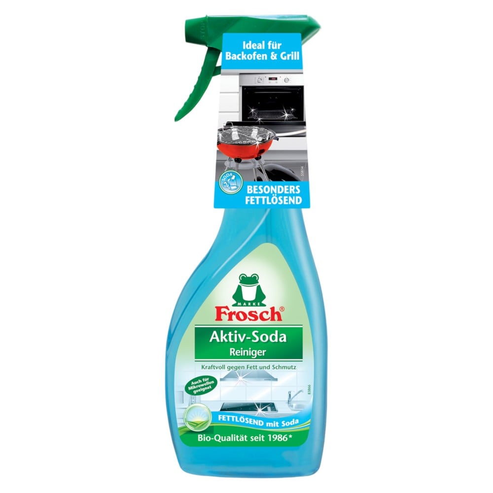 Frosch aktiv pastrues me bazë sode është një pastrues universal mjet i fuqishëm për pastrim intensiv të shtëpisë. Formulimi i bazuar në sodë natyrale, largon fuqishëm yndyrat, njollat e forta dhe papastërtitë nga pothuajse të gjitha sipërfaqet. Edhe pse është një pastrues shumë i fortë, soda aktive Frosch është e sigurt për t'u përdorur në kuzhina dhe zona ku ruhen ushqimet.