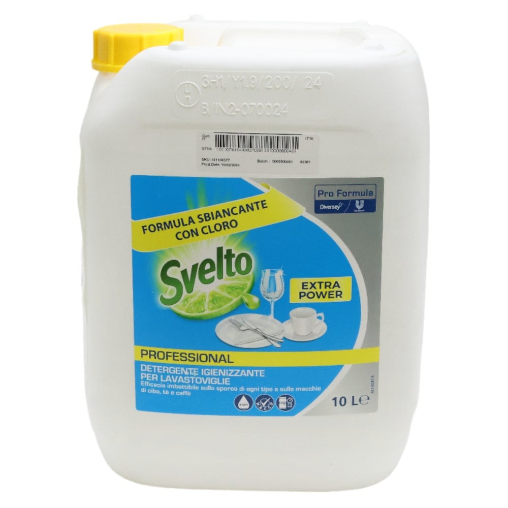 Detergjenti për lavastovilje Svelto Extra Power në paketën prej 10 litra është produkti ideal për larjen e enëve në mënyrë efikase dhe të shpejtë. Formula e tij e fuqishme largon efikasht dhe pa pësuar dëmtime mbetjet e ushqimit dhe yndyrnat e vështira. Kjo sasi e madhe siguron një zgjidhje të qëndrueshme për përdoruesit që kërkojnë një detergent të cilin mund ta përdorin për një periudhë të gjatë kohore.