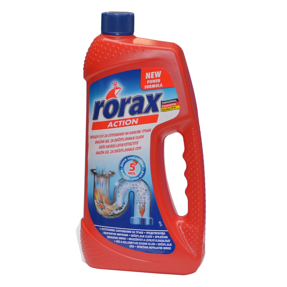 Rorax Action heq bllokimet e forta në kanalet dhe tubacionet dhe eliminon aromat e pakëndshme. Është efektiv kundër grumbullimit të yndyrës dhe flokëve. Funksionon në vetëm 5 minuta dhe është i përshtatshëm për të gjitha kullimet shtëpiake. Parandalon shfaqjen e aromave të pakëndshme. Largon bllokimet kokëfortë.