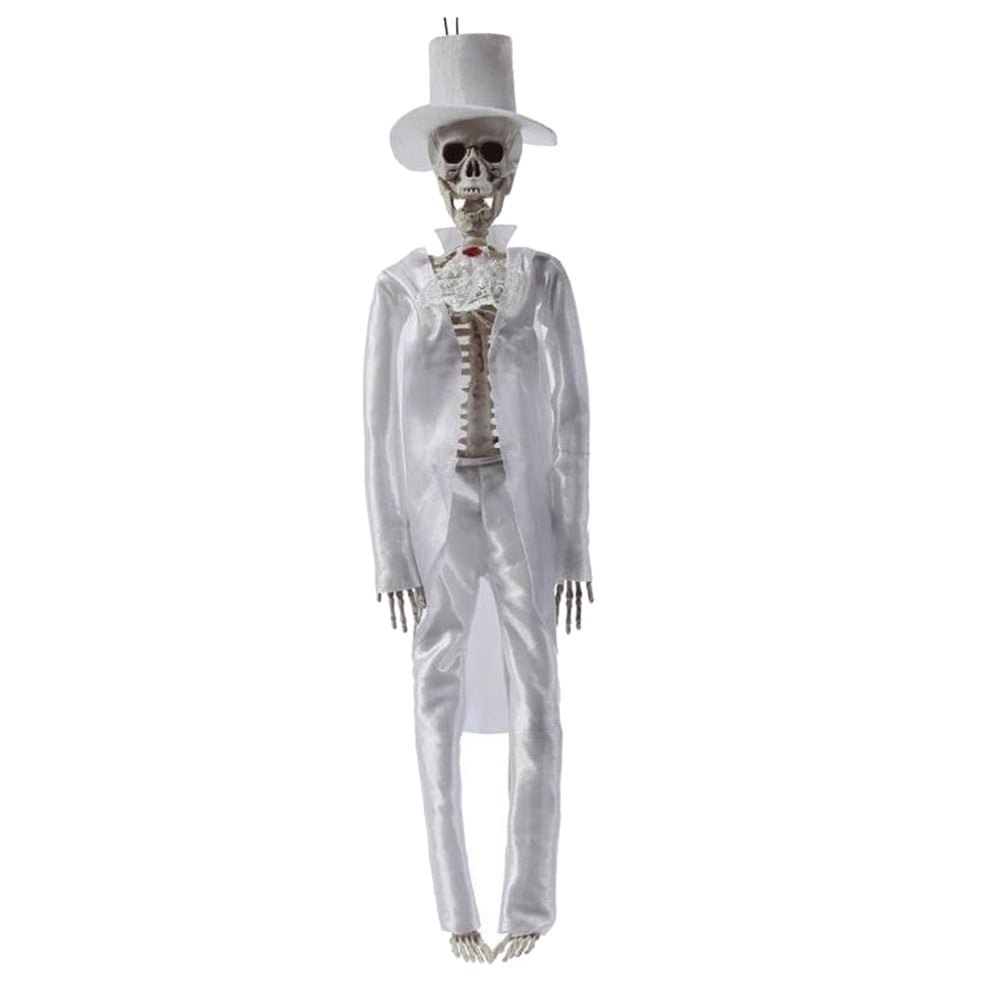 Dhëndër skelet dekorues, prej materiali plastik, me veshje poliestre, me përmasa 42 cm, në ngjyrë të bardhë. Përdoret për dekorimin e mureve të ambienteve të ndryshme, në rastet e festave si Halloween, karnavalet apo festa me kostume.