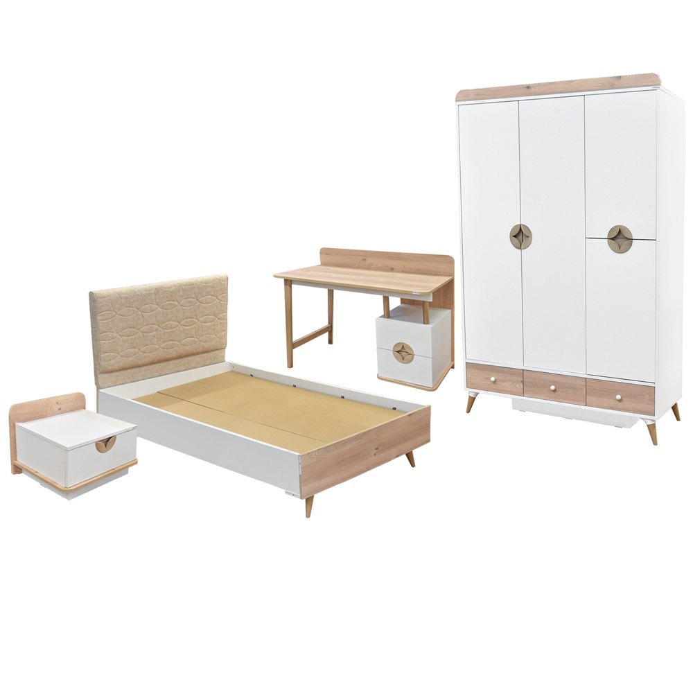 Dhomë gjumi, Lotus, melaminë, e bardhë/dru, 135x50xH208 cm