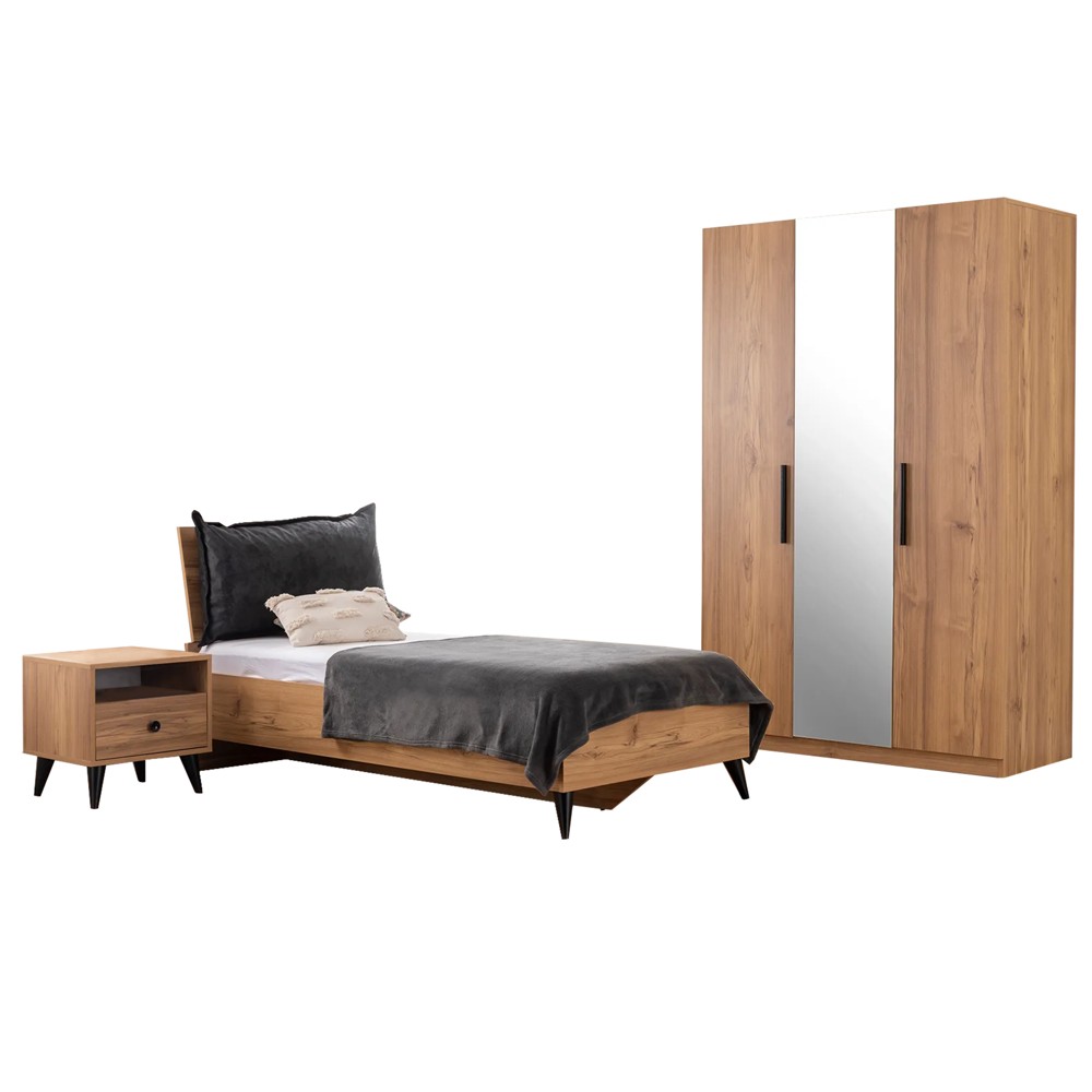 E thjeshtë, elegante, funksionale, praktike këto janë fjalët që përcaktojnë më së miri zgjedhjet e mobilimit. Dhoma e gjumit ETI është bërë me materiale cilësore dhe duke përfunduar dhe përzier një pamje moderne dhe elegante me çmime të ulëta. Ky model ka një seksion të vendosur qendror me rafte, pjesë me shufra per varese rrobash dhe dy sirtare mjaft praktike.