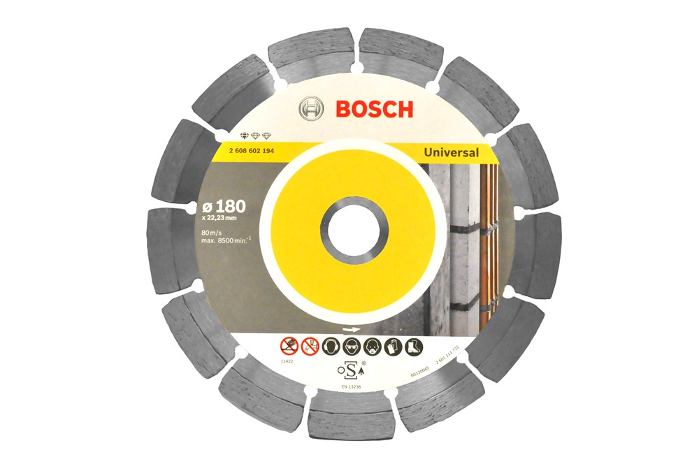 Disk diamanti, profesional, 180x22.2 mm, universal. Përdoret për të prerë të gjitha llojet e materialeve të ndërtimit si: beton, tullë, pllakë, mermer etj. I ndërtuar me material çeliku dhe me dhëmbë diamanti siguron një prerje të shpejtë, të paster dhe efikase. Disk me cilësi dhe jetëgjatësi të lartë.