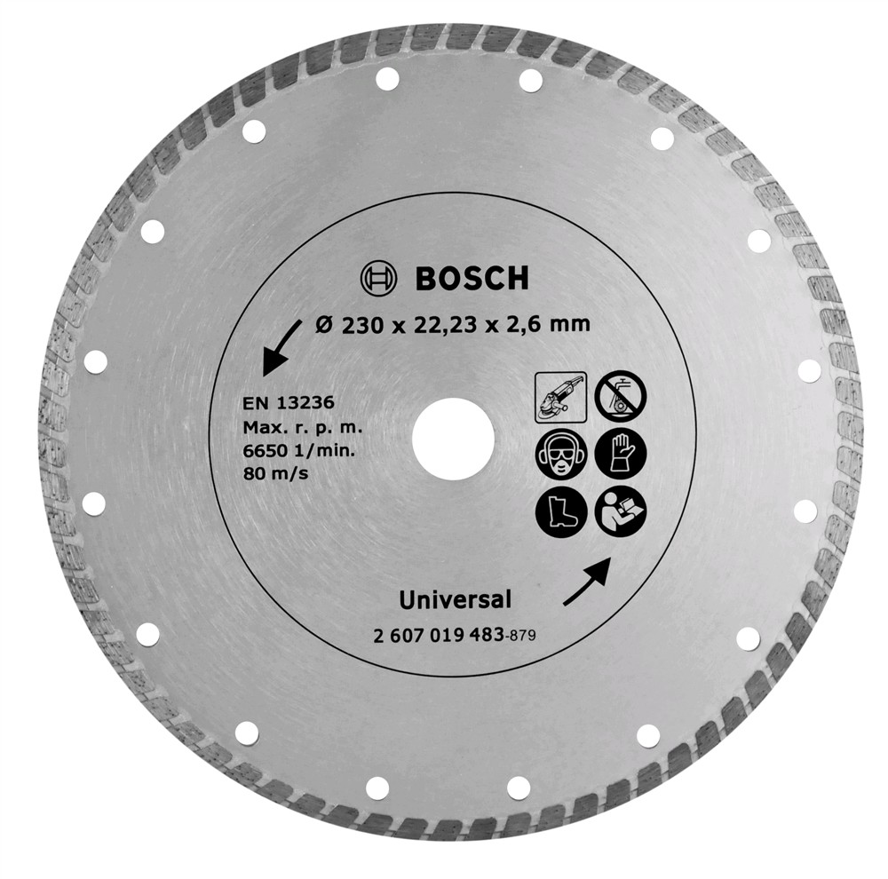 Disk diamanti profesional 230x22.2mm universal. Përdoret për të prerë të gjitha llojet e materialeve te ndertimit si: beton, tullë, pllakë, mermer etj. I ndërtuar me material çeliku dhe me dhëmbë diamanti siguron një prerje të shpejtë, të paster dhe efikase. Disk me cilësi dhe jetëgjatësi te lartë.