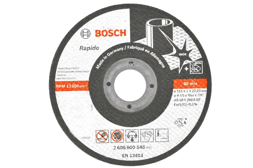 Disku për prerje metali, inoksi,) 115x1 mm është zgjedhja ideale për prerjen e të gjitha llojeve të metalit. Shtresa të shumëfishta fibre xhami janë endur për të formuar një shtresë jashtëzakonisht të fortë e cila siguron një prerje të shpejtë dhe të pastër.