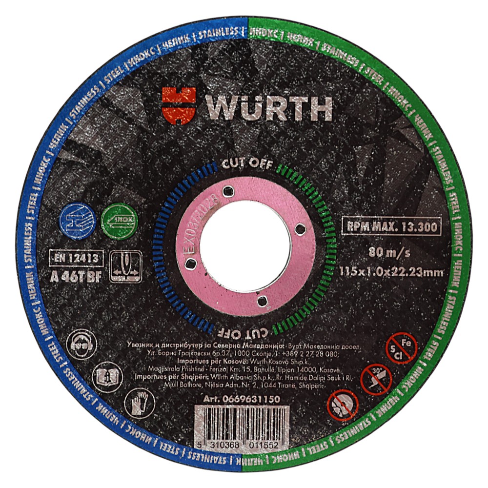 Disqet prerëse Cut-OFF nga Würth, me përmasat 115x1.0 mm, janë projektuar posaçërisht për prerje precize dhe efikase të çelikut inox dhe materialeve të tjera metalike të forta. Me një trashësi prej vetëm 1.0 mm, ky disk siguron prerje të pastra, të holla dhe pa deformime, duke reduktuar ngrohjen e materialit gjatë procesit të prerjes. Kjo e bën ideal për përdorim profesional në industrinë metalpunuese, instalime të ndryshme ose punime precize në punëtori. Cilësia e lartë e garantuar siguron jetëgjatësi, siguri maksimale gjatë përdorimit dhe performancë të qëndrueshme edhe në kushte intensive pune.