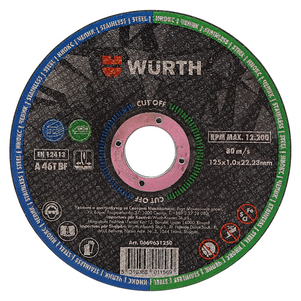 Disqet prerëse Cut-OFF nga Würth me diametër 125 mm dhe trashësi 1.0 mm janë zgjidhja ideale për prerje të sakta dhe të shpejta në materiale si çeliku inox dhe metalet e tjera të forta. Falë trashësisë së reduktuar, ky disk ofron prerje të holla, me më pak prodhim nxehtësie dhe konsum më të ulët të energjisë, duke minimizuar deformimin e materialit gjatë punës. I përshtatshëm për përdorim profesional në punime metalike, konstruksione, riparime apo instalime, ky disk siguron efikasitet të lartë dhe jetëgjatësi, ndërsa cilësia e garantuar nga Würth ofron besueshmëri dhe siguri maksimale në çdo përdorim.
