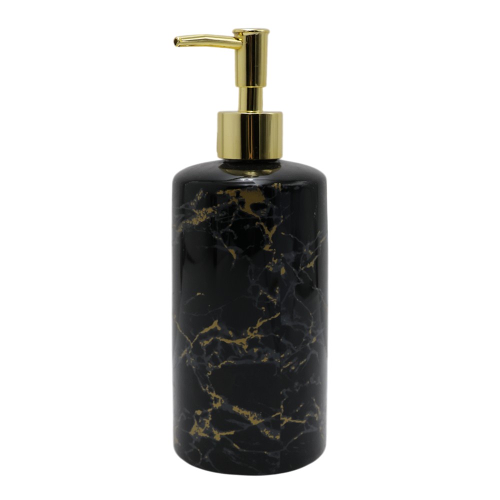 Dispenseri i sapunit të lëngshëm "Astoria B" vjene për ju në material qeramik të cilësisë së lartë në ngjyrë të zezë dhe me buton ngjyrë floriri. Me dizajnin me ujera ky aksesor do i japë një pamje moderne banjës tuaj. Lehtësisht i kombinueshëm me të gjithë tipet e arredimeve. Përmasat, lartësia 18 cm x diametër 6 cm.