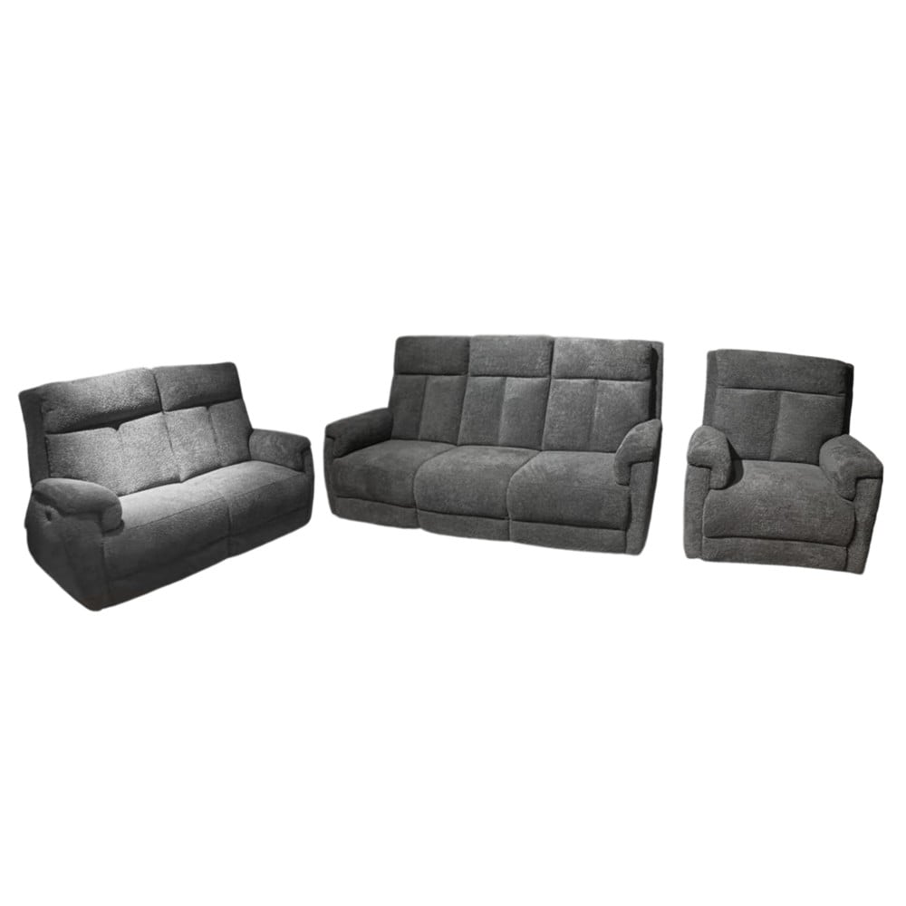 Ky set modern divanësh me tapiceri tekstile në ngjyrë gri të errët sjell elegancë, rehati dhe sofistikim në çdo ambient. Ngjyra e thellë dhe neutrale krijon një atmosferë mikpritëse dhe harmonike. Seti përbëhet nga një divan 3-vendësh (221x80xH78 cm), një divan 2-vendësh (165x80xH78 cm) dhe një kolltuk (84x80xH78 cm), duke ofruar hapësirë të bollshme për ulje dhe relaksim për familjen dhe mysafirët. Tapiceria e butë dhe e këndshme në prekje siguron komoditet maksimal, ndërsa linjat e pastra dhe forma ergonomike i japin ambientit një pamje moderne dhe të rafinuar. Ky set divanësh gri e errët është zgjedhja perfekte për ata që duan të kombinojnë stilin, rehati dhe elegancë në shtëpinë e tyre.