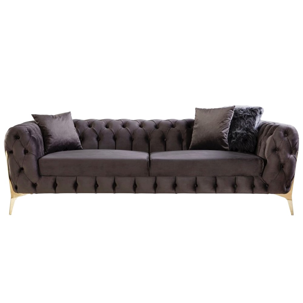 Ky divan me tre vende është i dizajnuar për të ofruar një kombinim të komoditetit, elegancës dhe funksionalitetit, duke sjellë një element të veçantë në ambientin tuaj të banimit. Përmban një tapiceri tekstili me ngjyrë antrasit/floriri plot shije dhe mund të përshtatet me stile të ndryshme aredimi në ambient. Divani është i pajisur me këmbë metalike, të cilat shtojnë një prekje moderne dhe kontrastuese në dizajnin e përgjithshëm.