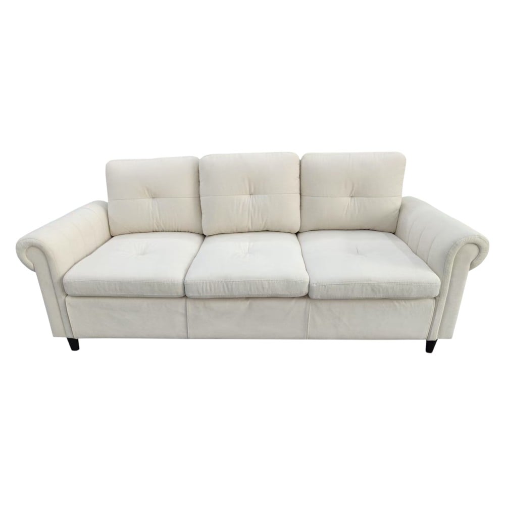 Divan 3-vendësh, tapiceri tekstili, kornizë druri, këmbë plastike, e bardhë, 206x86xH87 cm