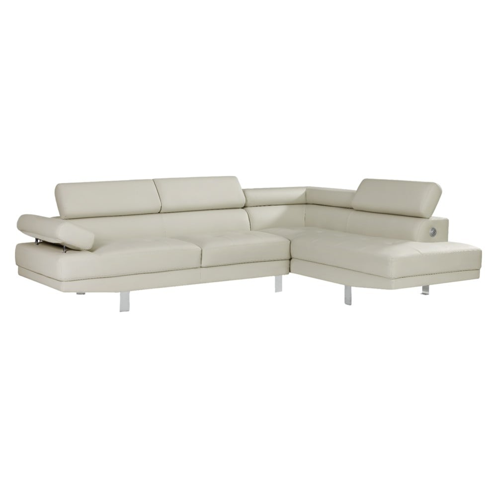 Divan këndor, djathtas, lëkurë, këmbë metalike, gri e lehtë, (267x195/89)x68xH82 cm