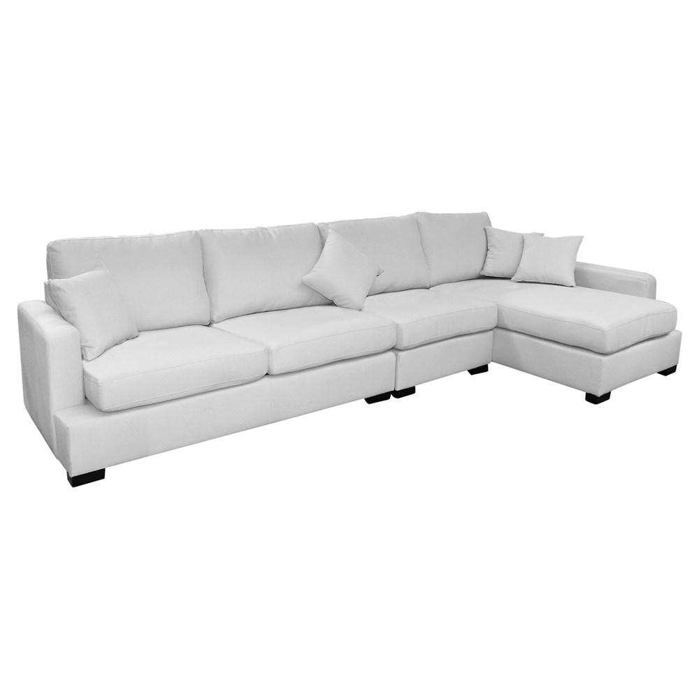 Divan këndor, djathtas, LOVE, strukturë druri, tapiceri tekstili, e bardhë, 357x173xH91 cm