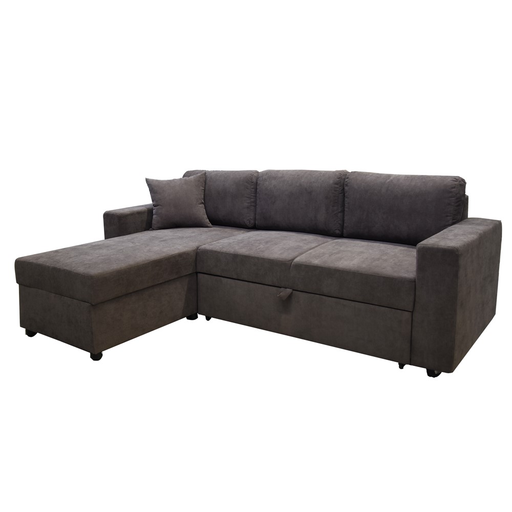 Divan këndor, djathtas/majtas, hapje krevat, strukturë druri, tapiceri tekstili, kafe, 230x160xH90 cm