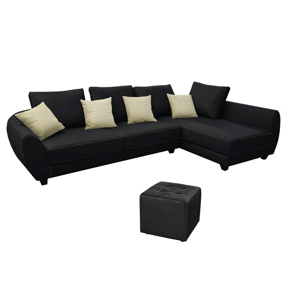 Po vlerësoni:Divan këndor, djathtas, RIMINI, strukturë druri, tapiceri tekstili, zezë, 285x170xH70 cm