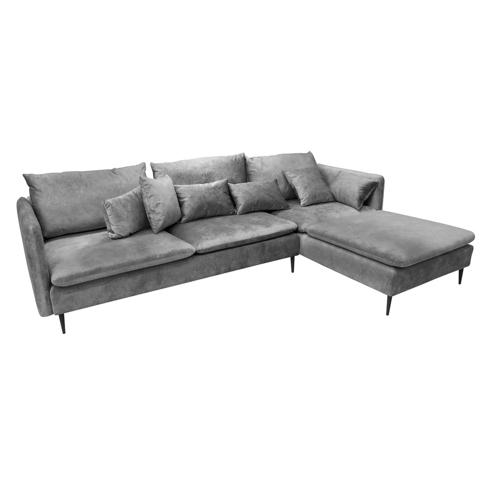 Divan këndor, djathtas, strukturë druri, këmbë metalike, tapiceri tekstili, 290x190xH85 cm