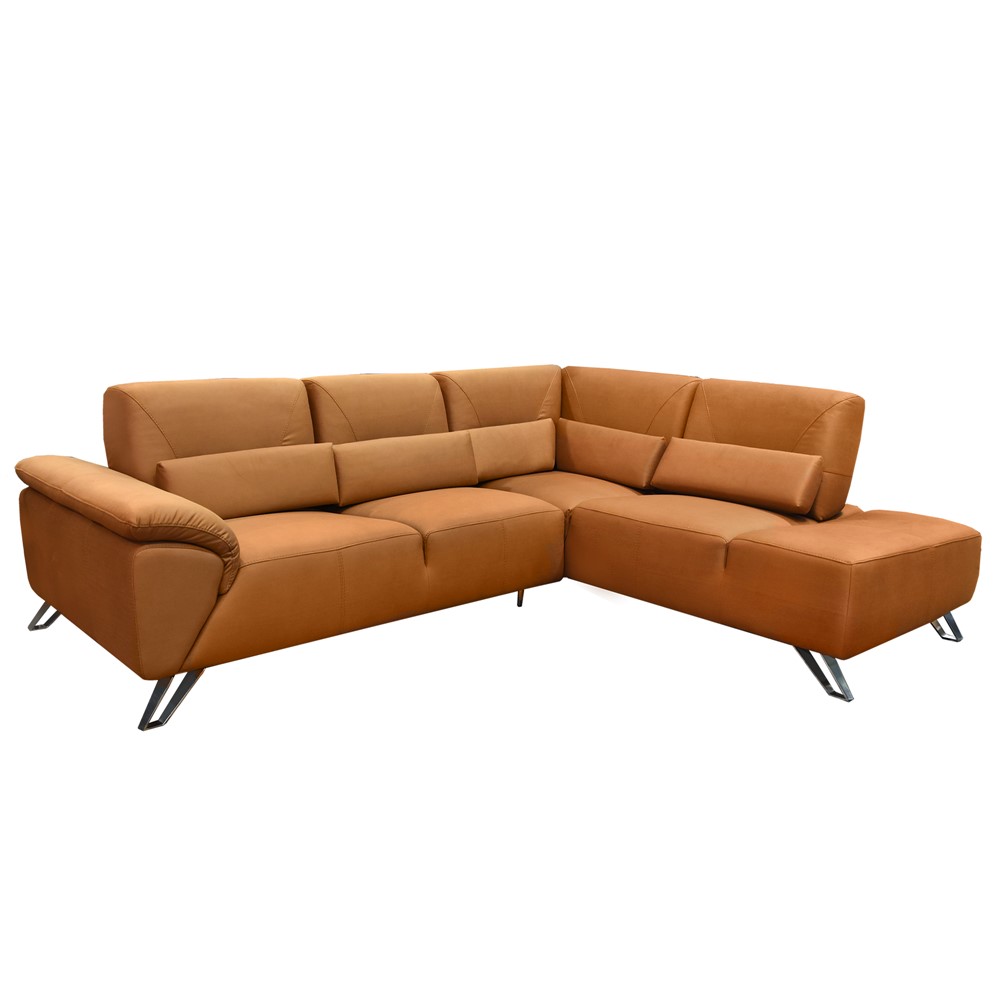 Divan këndor, djathtas, strukturë druri, këmbë metalike, tapiceri tekstili, kafe, 220x275xH85 cm