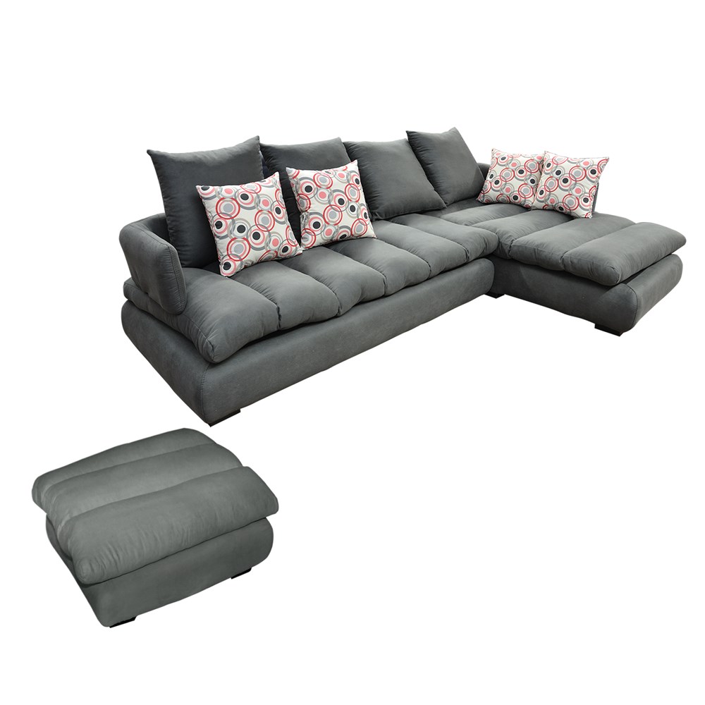 Po vlerësoni:Divan këndor, djathtas, strukturë druri, tapiceri tekstili, gri, 282x170xH70 cm