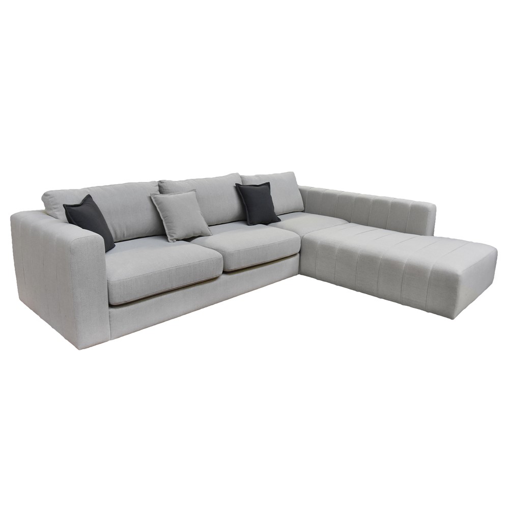 Divan këndor, djathtas, strukturë druri, tapiceri tekstili, gri, 300x240xH80 cm