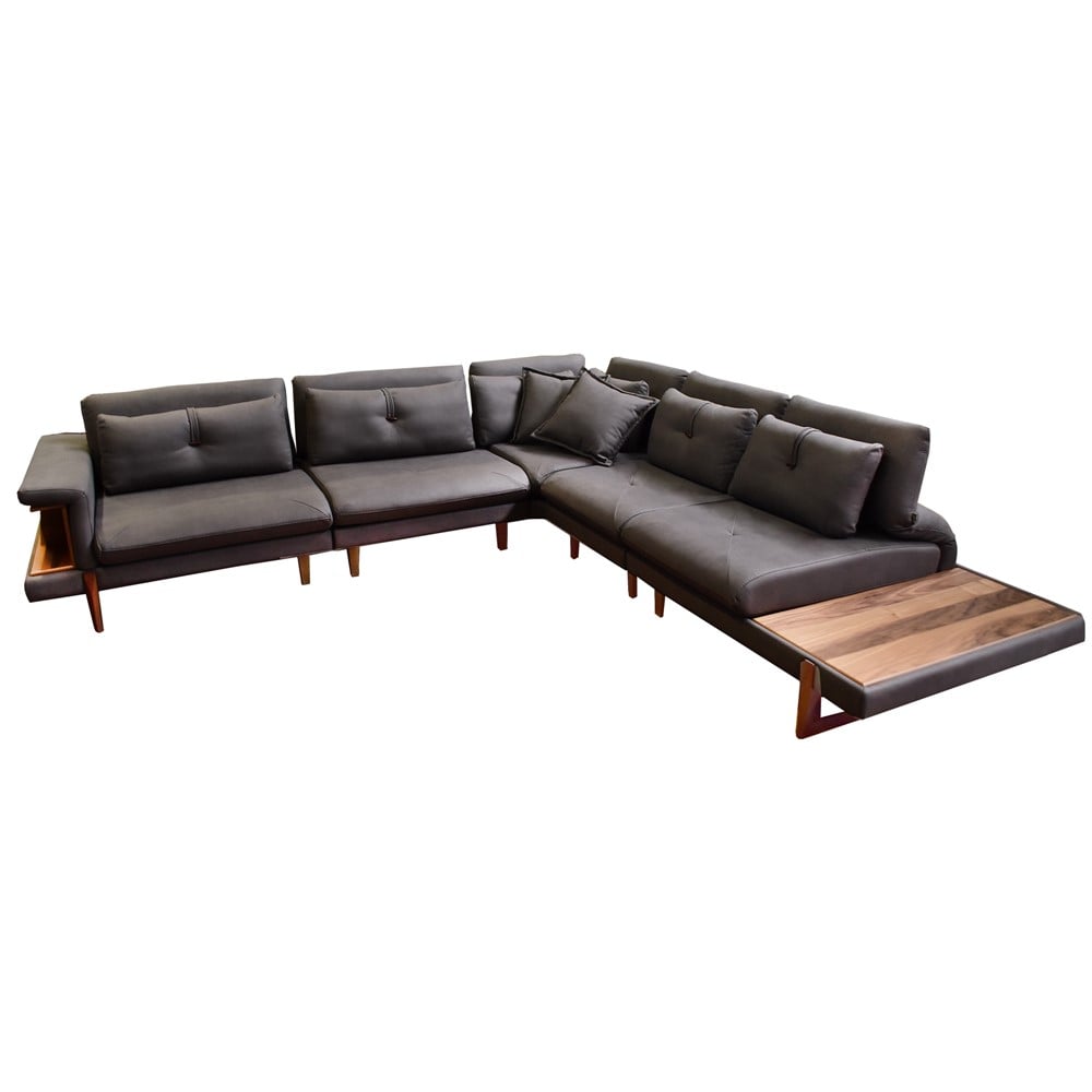 Divan këndor, djathtas, strukturë druri, tapiceri tekstili, kafe, 300x320xH90 cm