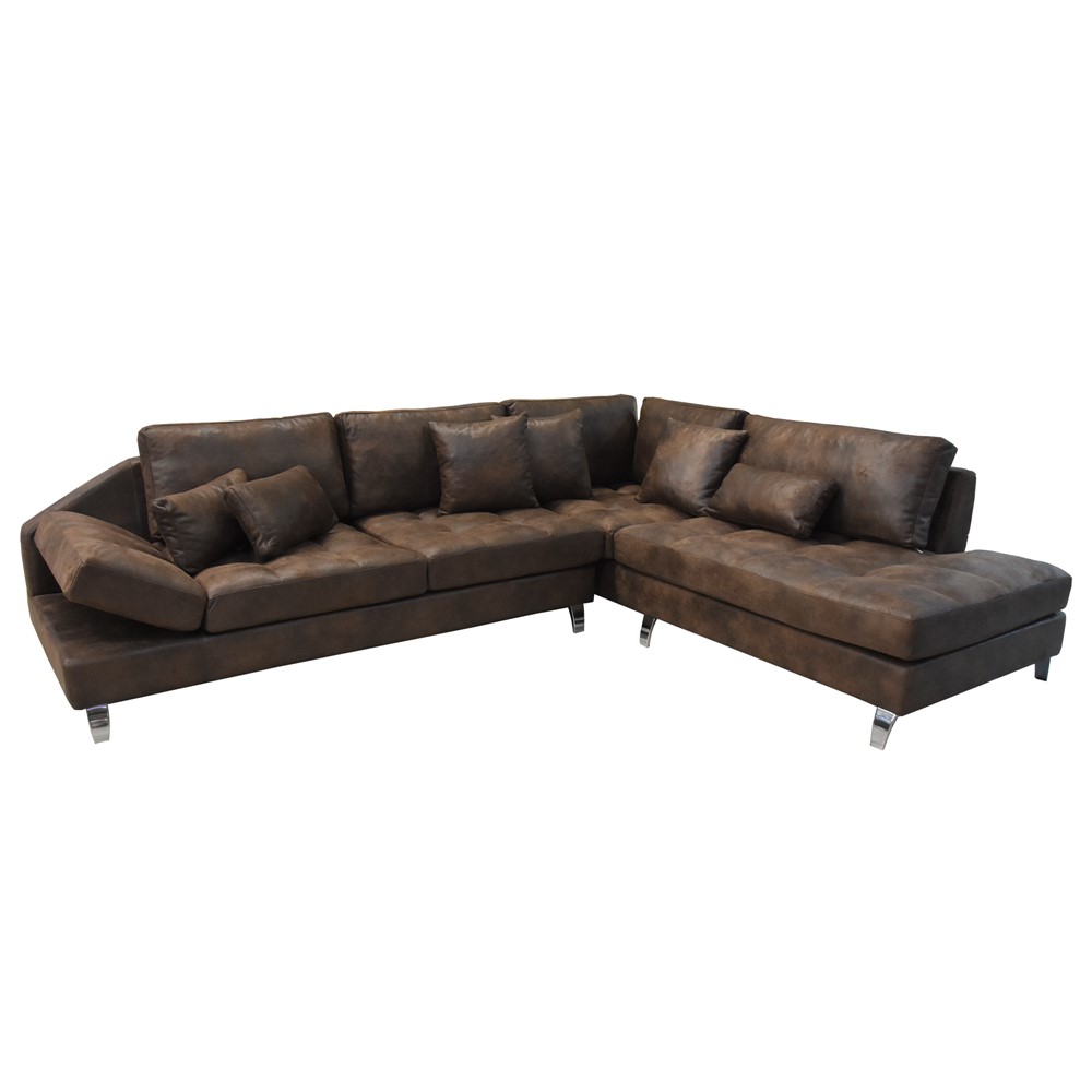 Divan këndor, djathtas, strukturë druri, tapiceri tekstili, kafe/bronzi, 290x230xH70 cm