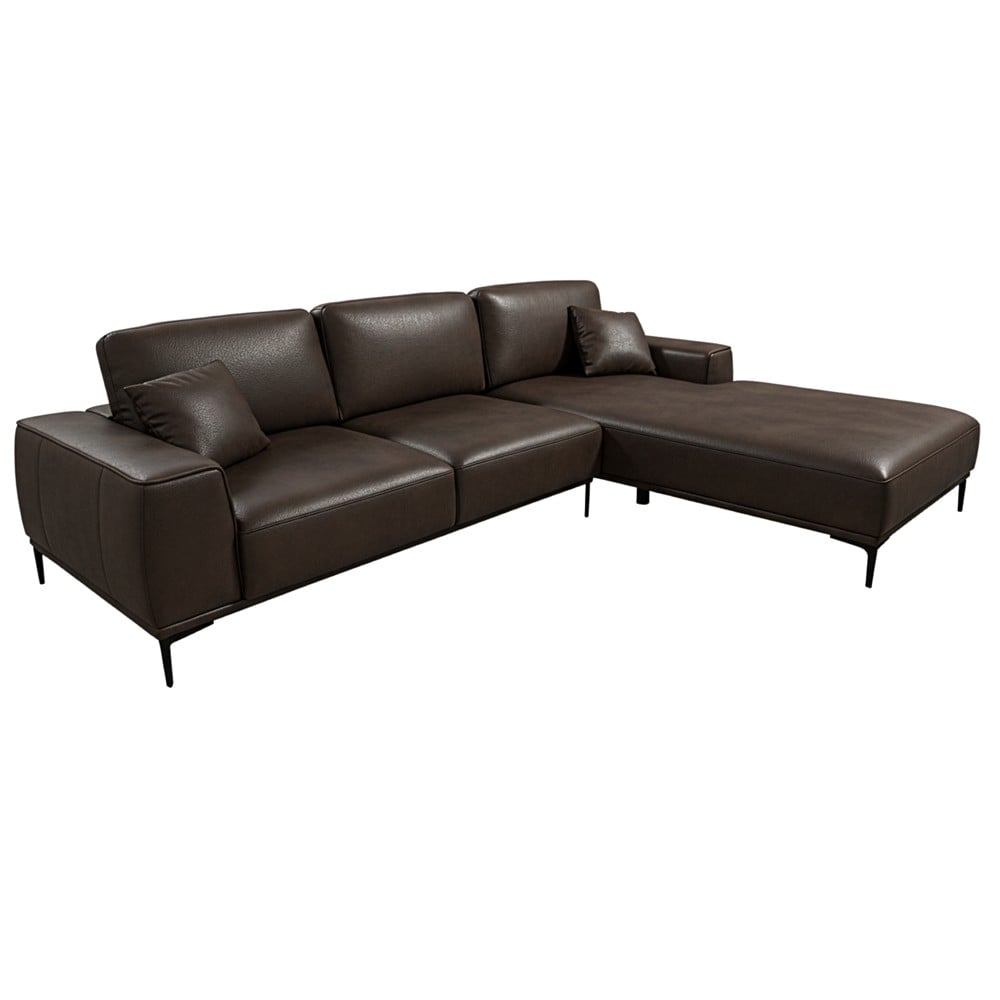Divan këndor, djathtas, tapiceri lëkure, kafe e errët, 290x211xH103 cm