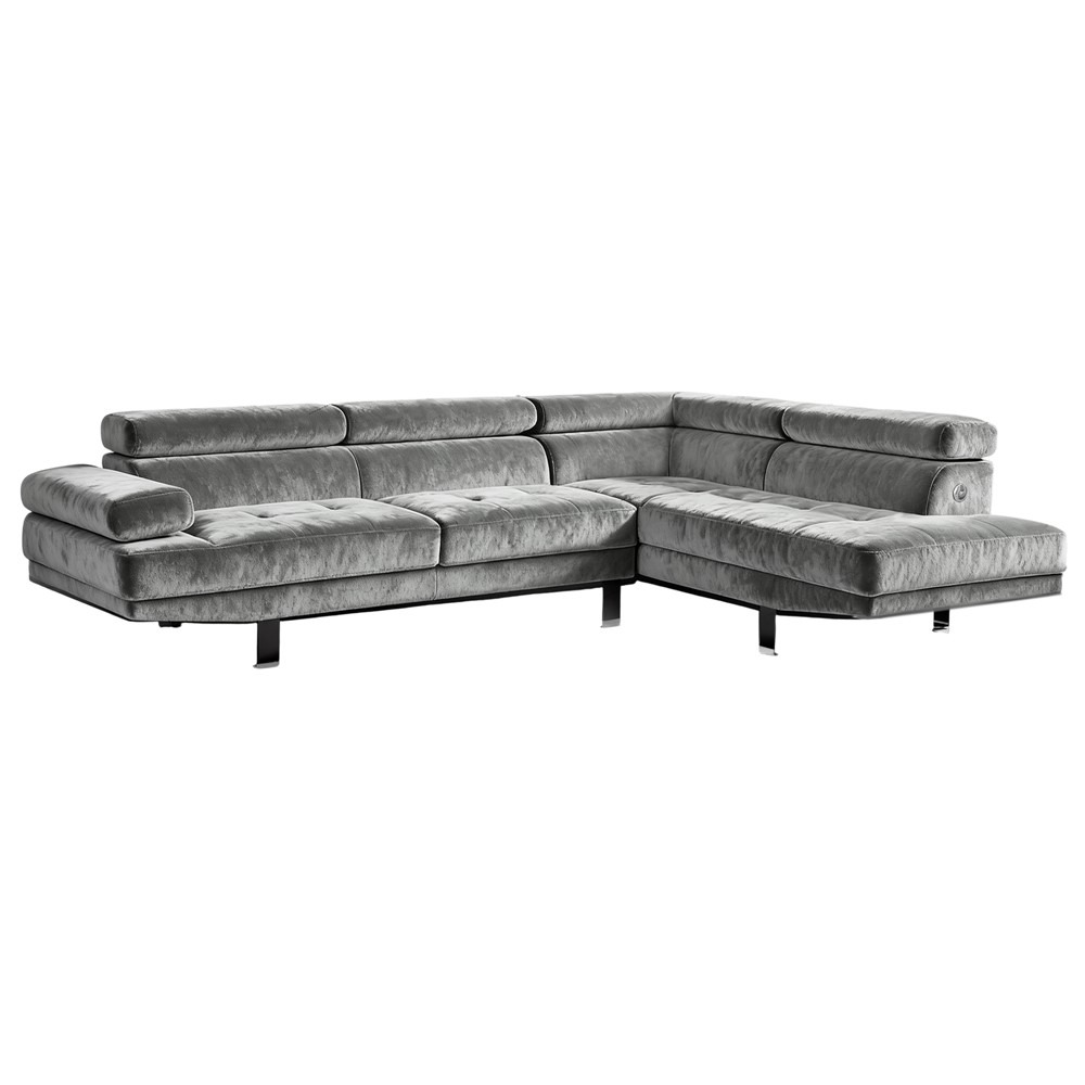 Një zonë qetësie dhe dizajni modern për shtëpinë tuaj, ky divan këndor me tapiceri tekstili gri e hapur dhe këmbë metalike sjell në sallon ndjesinë e një ambienti të hapur, të freskët dhe mikpritës. Ngjyra neutrale e butë gri bën që hapësira të duket më e gjerë dhe i jep sallonit atmosferë moderne e elegante, ideale për kombinim me dekor minimalist, skandinav ose modern. Forma në “L” e divanit, me pjesën këndore nga ana e djathtë, e bën të përshtatet në mënyrë harmonike në qoshet e dhomës dhe krijon një vend qendror për pushim, biseda me familjen apo shikim filmi. Tapiceria tekstili kontribuon me butësi dhe rehati, sendiljet janë miqësore për prekje, të përshtatshme për përdorim ditor dhe mikpritës për mysafirët. Këmbët metalike i japin një karakter bashkëkohor dhe elegant, stabilitet dhe qëndrueshmëri të sigurt, ndërkohë që pamja e hollë e këmbëve e bën divanin vizualisht më “të lehtë”, pa e rënduar ambientin. Përmasat bujare garantojnë hapësirë të bollshme për ulje, mjafton për familje, miq, dhe momente relaksi.
