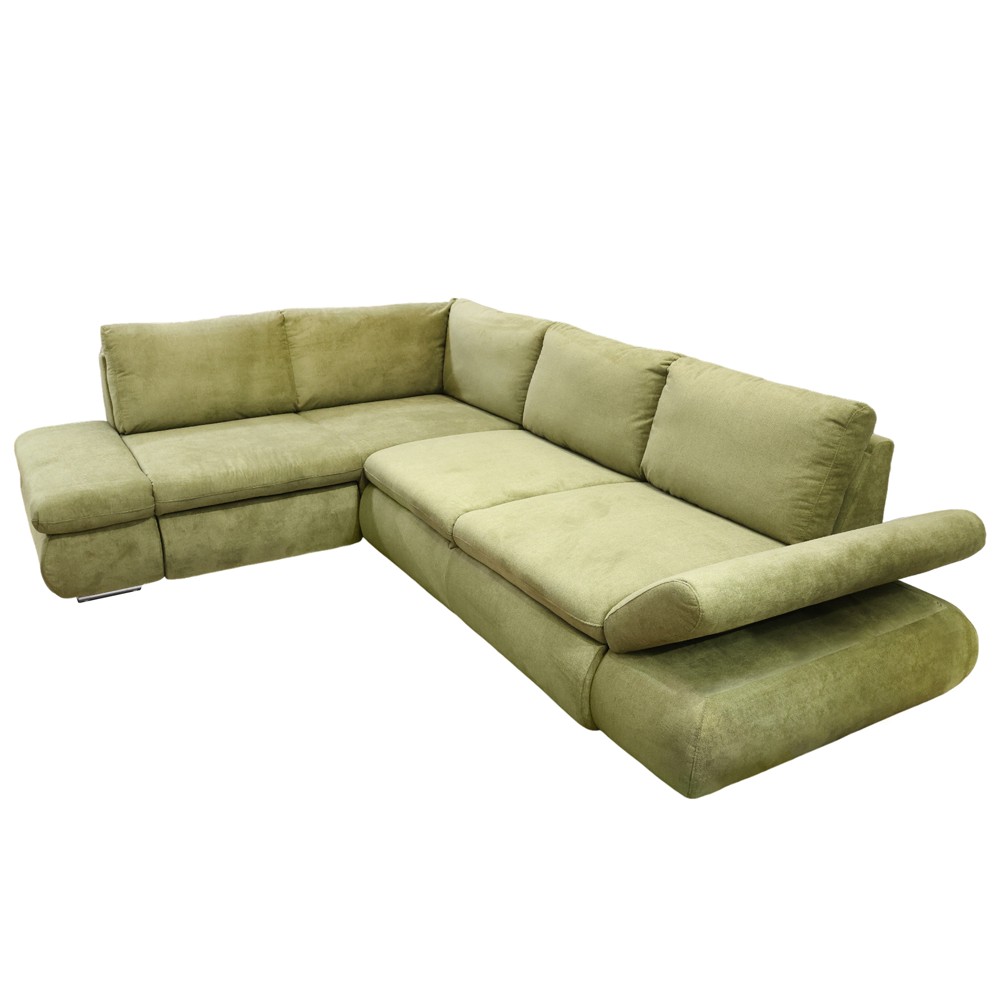 Divan këndor, me kanape në anën e majtë, me përmasa 300x224 cm, me tapiceri tekstili, në ngjyrë jeshile të errët. Struktura mbajtëse është e përbërë nga shufra rezistente druri ahu dhe bredhi, si dhe material melamine, pa përmbajtje formaldehidesh. Mbushja e brendshme mesatarisht e butë përbëhet nga materiale sfungjeri, pa PVC, me susta çeliku përforcuese. Divani është i pajisur me 2 pjesë mbështetëse të lëvizshme, të cilat mund të përshtaten për të ofruar komfort maksimal, ka një hapësirë magazinimi që hapet dhe këmbë statike kromi me lartësi 4.2 cm. Ndenjësja e divanit mund të hapet duke lejuar që të kthehet në një krevat, me sipërfaqe 213x129 cm. Materiali veshës është rezistent ndaj njollave dhe mund të pastrohet lehtësisht me një pecetë të lagur. Dizajni minimalist dhe funksional e bën këtë produkt një zgjedhje optimale për ambientet tuaja të brendshme.