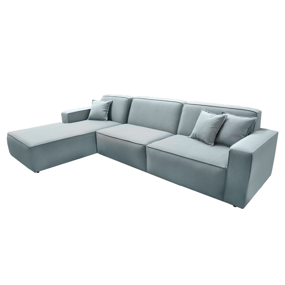 Divan këndor, majtas, strukturë druri, tapiceri tekstili, blu, 300x180xH80 cm
