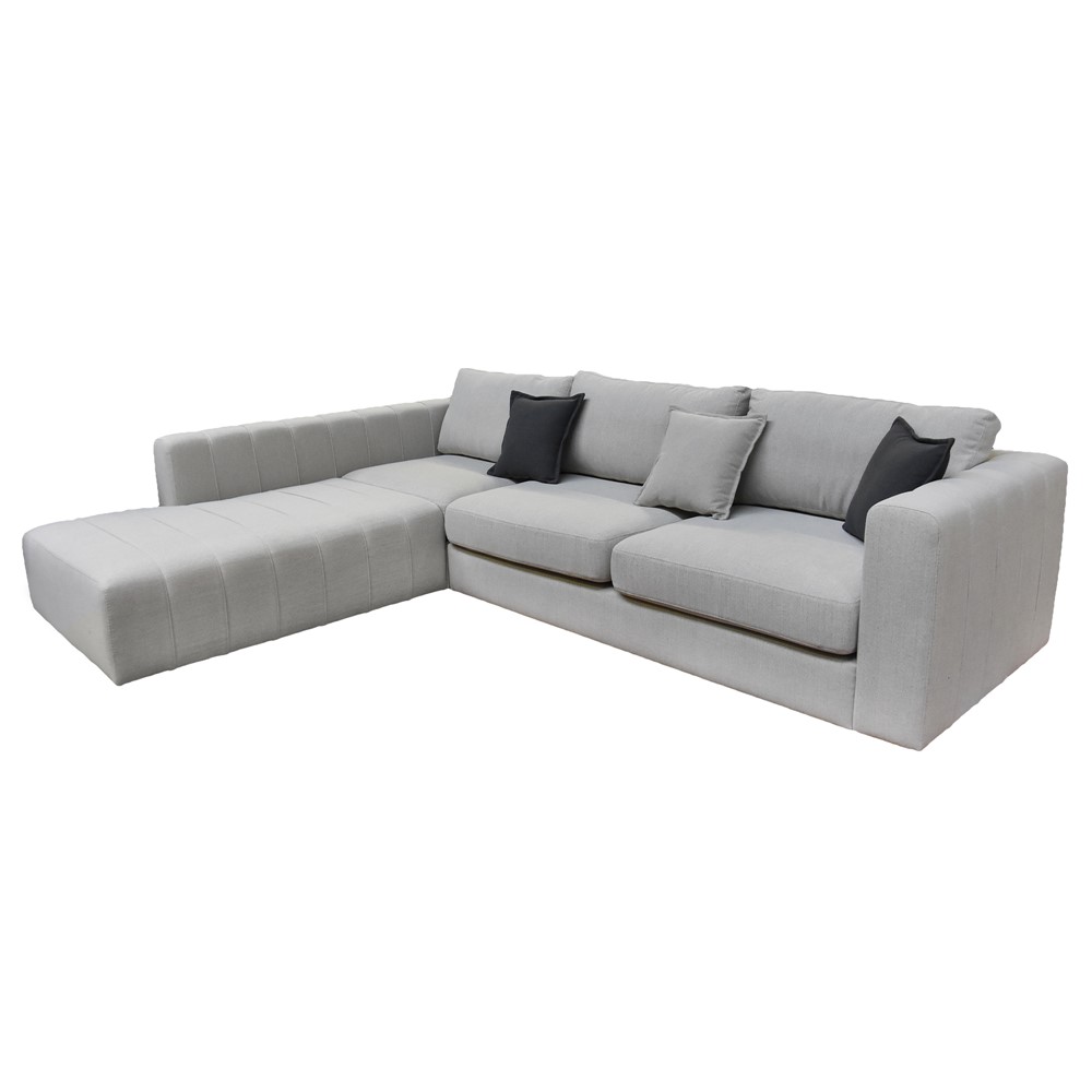 Divan këndor, majtas, strukturë druri, tapiceri tekstili, gri, 300x240xH80 cm