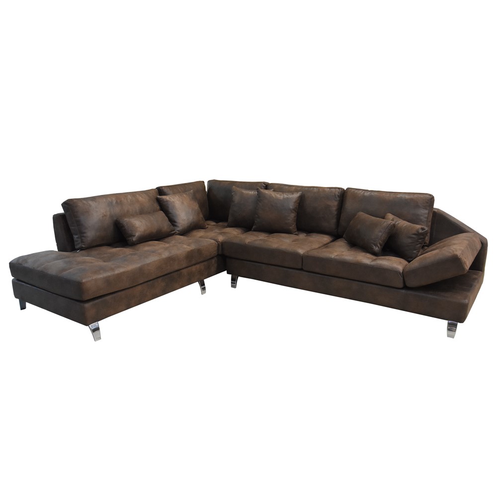 Divan këndor, majtas, strukturë druri, tapiceri tekstili, kafe/bronzi, 290x230xH70 cm