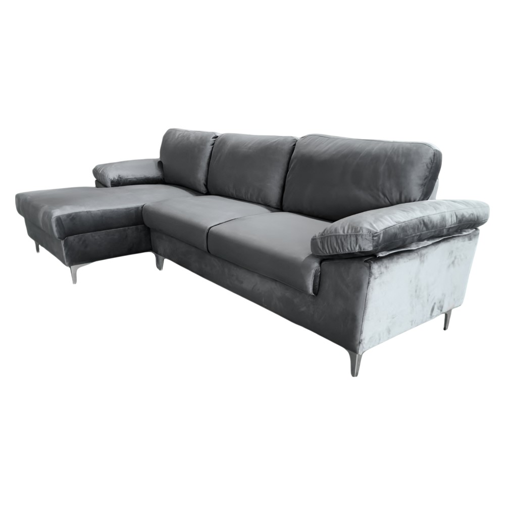 Ky divan këndor është ajo çfarë ju duhet për arredimin e shtëpisë tuaj. Vjen me një dizanj shumë të këndshëm dhe modern në ngjyrë gri. Përshtatet lehtësisht si në shtëpitë moderne ashtu edhe në ato tradicionale. Vjen e përbërë nga një material veshës tekstili dhe me këmbë metalike. Struktura e këtij divani është perfekte për ata që kërkojnë hapsirë dhe komoditet. Këmbët janë metalike dhe shumë të qëndrueshme. Me blerejn e këtij divani ju do të keni një orendi me stil dhe unik. Materiali i divanit është i një cilësie të lartë dhe i punuar me kujdes. Përmasat e divanit janë 263x135xH83 cm, ideal për hapsirat tuaja.
