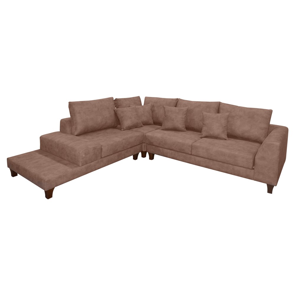 Divan këndor, majtas, VENICE, strukturë druri, tapiceri tekstili, kafe, 286x260xH85 cm