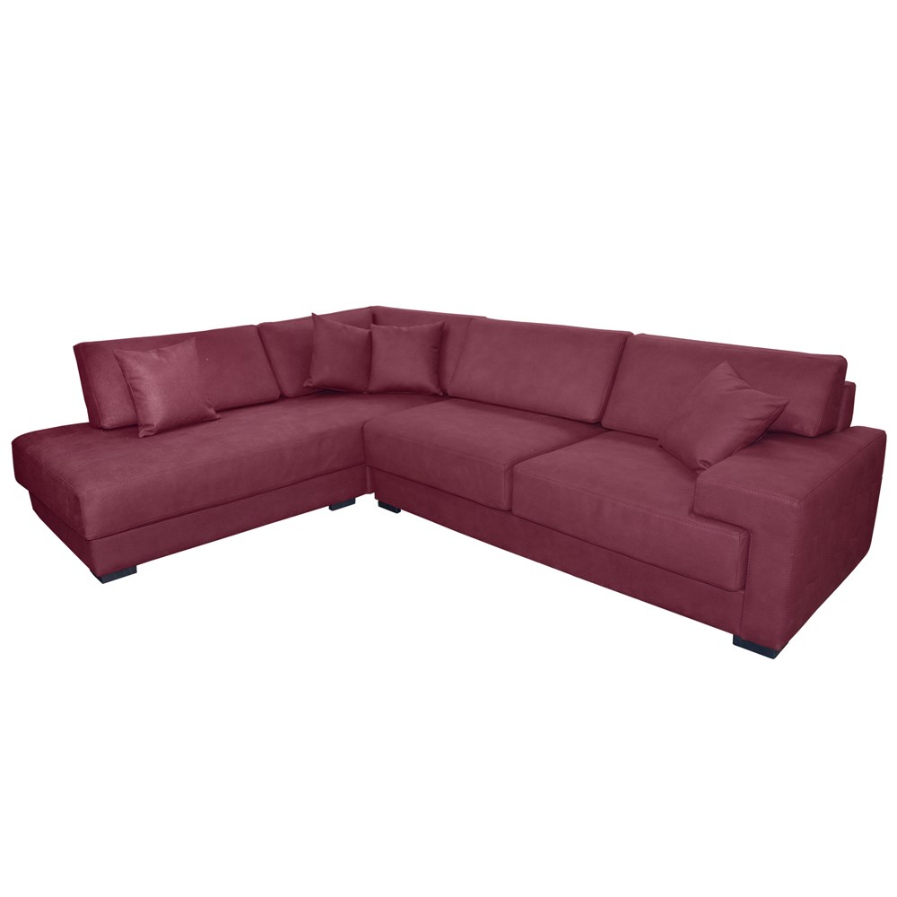 Divan këndor, majtas, VENICE, strukturë druri, tapiceri tekstili, vishnjë, 287x215xH85 cm