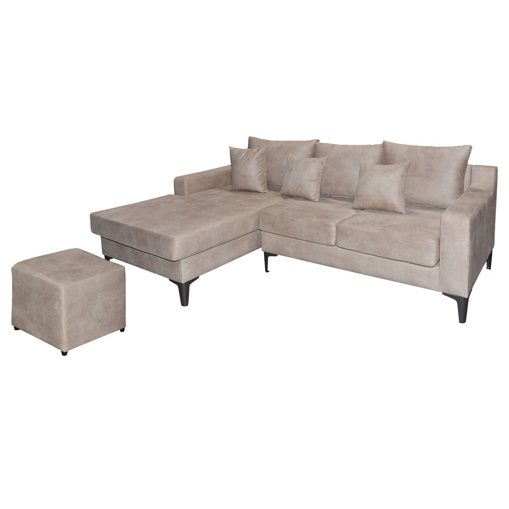 Divan këndor me pupë, majtas, VIENA, strukturë druri, tapiceri tekstili, bezhë, Divani këndor: 240x170xH78 cm; Pupa: 50x50xH42 cm