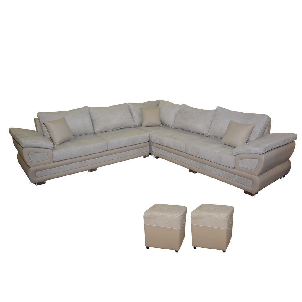 Po vlerësoni:Divan këndor me pupë, tapiceri tekstili, këmbë metalike, 280x280xH75 cm