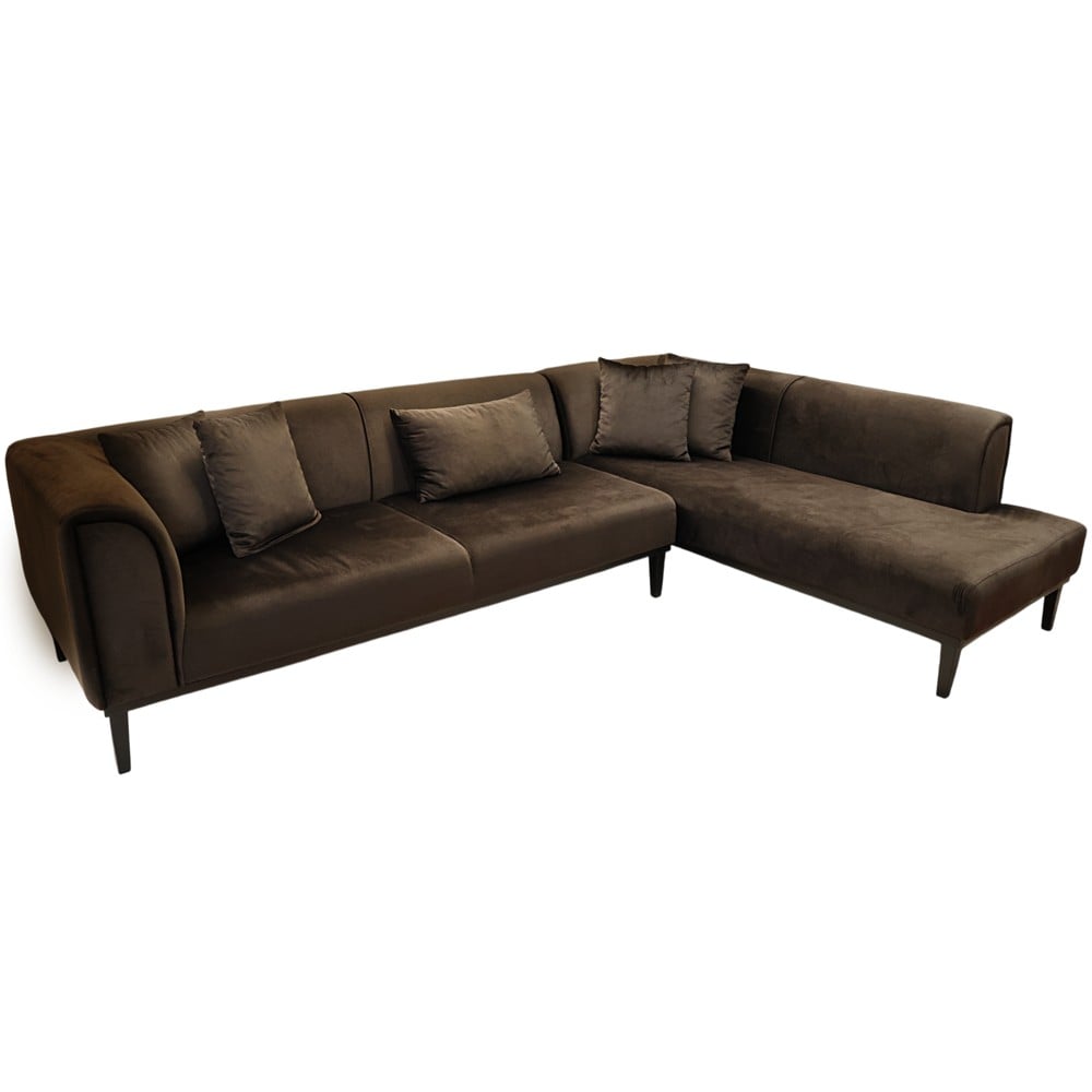 Divan këndor, Pierro, djathtas, tapiceri tekstili, kafe e errët, (288+202)x89xH73 cm