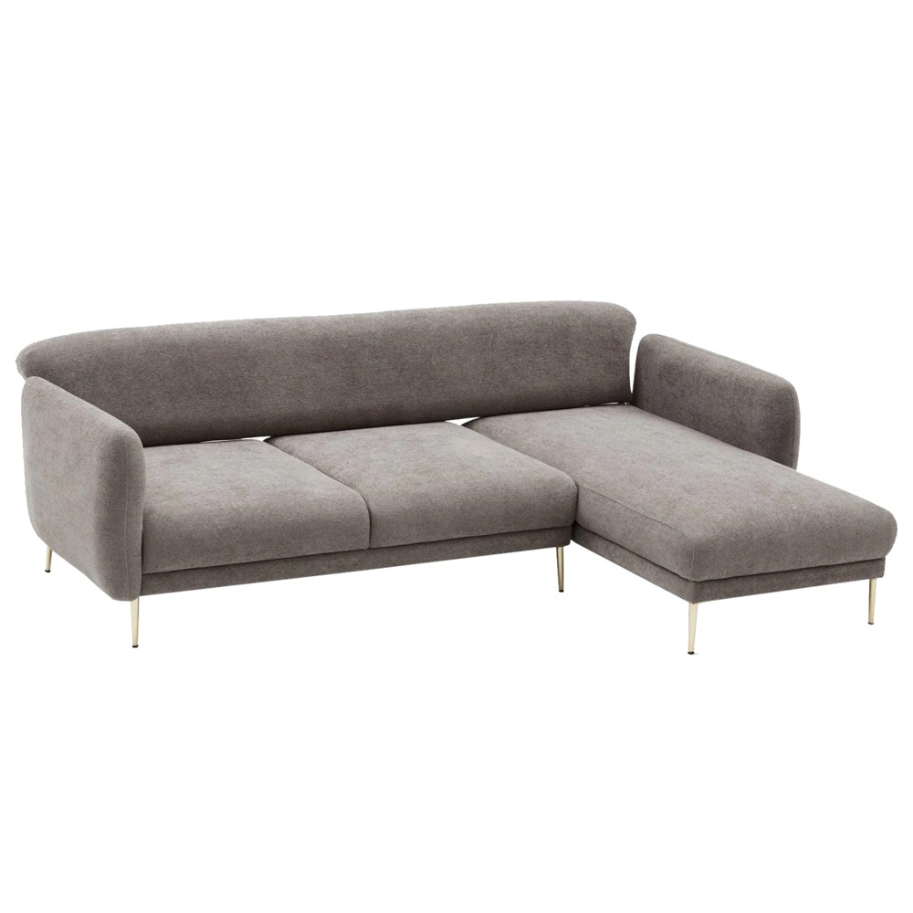 Divan këndor, Simena, djathtas, tapiceri tekstili, këmbë metalike, gri, 265x95xH80 cm