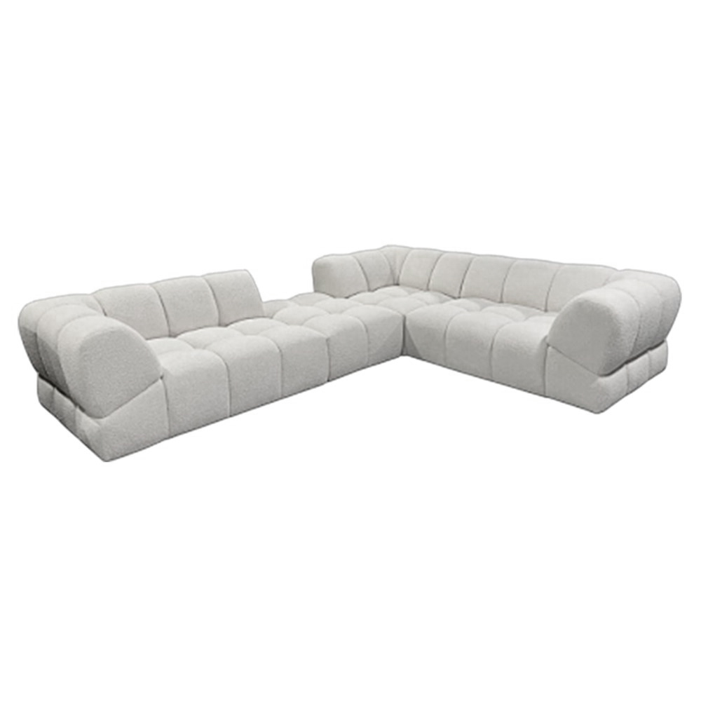 Po vlerësoni:Divan këndor, tapiceri tekstili, strukturë druri, i bardhë, 321x248xH67 cm