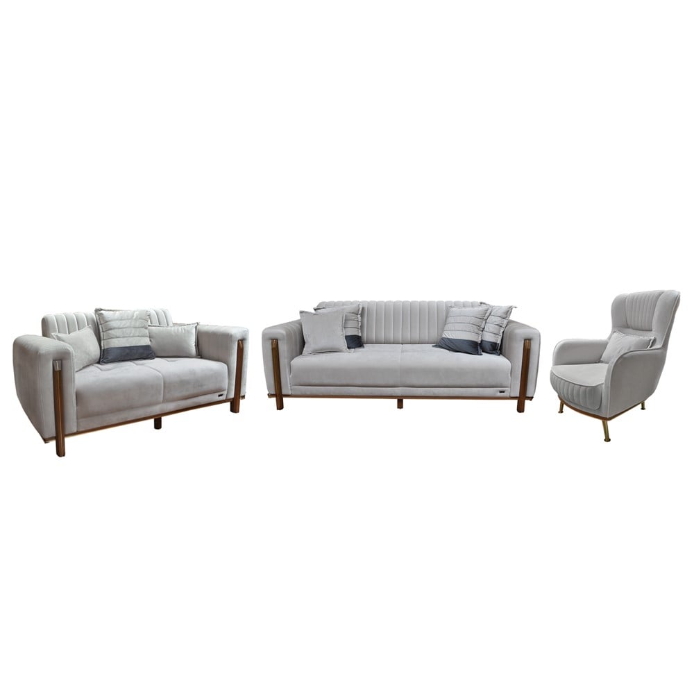Divan, set 3+2+1, Story, këmbë druri, tapiceri tekstili, krem, 224x92xH91 cm; 160x92xH91 cm; 82x94xH101 cm