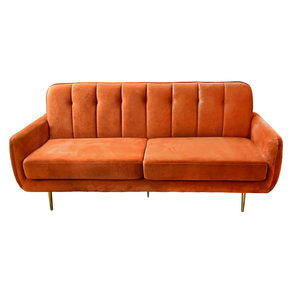 Divan, strukturë metalike (golden), tapiceri tekstili, portokalli, 185x81xH84 cm