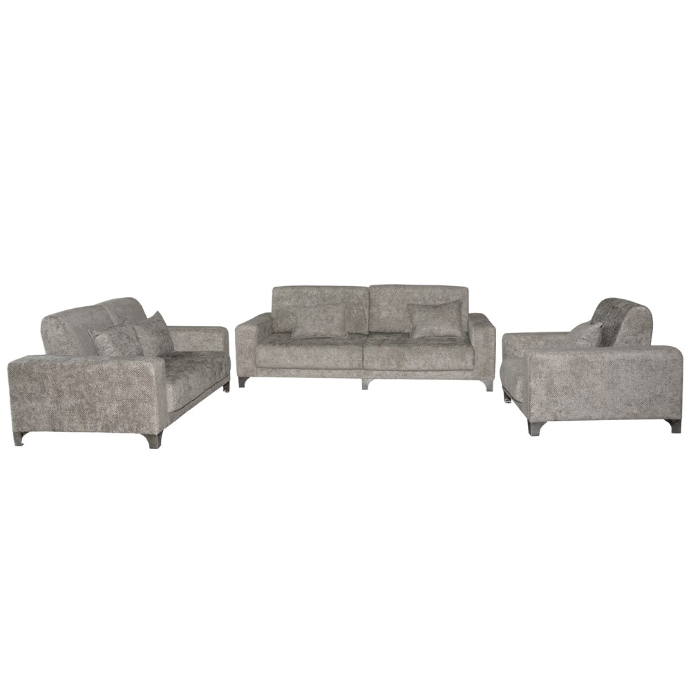 Divani 3+2+1 me nje dizenjo bashkohore, moderne dhe mahnitëse i veshur me tapiceri tekstili Italian të një densiteti të lartë. Ky divan është bërë në një strukturë të fortë me mbushje sfungjeri dhe filtri dhe i veshur me tekstil luksoz për atë ndjenjë krejtësisht relaksuese. Divan me dizenjo elegante punuar nga dore artistësh për të sjell një pjesë tërheqëse dhe luksoze e cila do të kompletojë çdo hapësirë jetese. I bukur dhe me stil, këndi siguron një vend të qetë për ju dhe mysafirët tuaj për t'u ulur dhe relaksuar. Me pamjen mikpritëse dhe komode, ky divan 3+2+1 do të jetë elementi kryesor dhe i përkryer për dhomën tuaj të ndenjes. Kombinim i bërë me gusto krijon një vështrim të ri dhe tërheqës i cili do të shndrisë dhomën tuaj të ndenjes. Me mekanizem hapje tek pjesa mbeshtetese e shpines. Seti përfshin: Divani 3-vendësh: 220x97xH83 cm; Divani 2-vendësh: 160x97xH83 cm; Kolltuku: 100x97xH83 cm