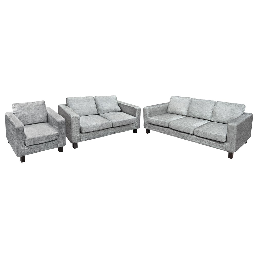 Divanë 3+2+1 vendësh, strukturë druri, tapiceri tekstili, gri, Divani 3-vendësh: 200x84xH80 cm; Divani 2-vendësh: 143x84xH80 cm; Kolltuku: 86x84xH80 cm