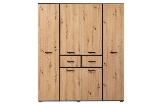 Ky dollap rrobash është i përshtatshëm për ambientet moderne dhe ofron një organizim të përsosur për rrobat dhe veshjet tuaja. Stili Lucia dhe cilësia e lartë e materialeve të përdorura e bëjnë atë një zgjedhje të shkëlqyer për shtëpinë tuaj. Dollapi ka një mënyrë organizimi të përsosur; i dizajnuar me 6 dyer dhe 2 sirtare në qëndër, ofron hapësira të bollshme nga të dy krahët. Në anësore të dollapit është vendosur një shirit metalik për të vendosur dhe ruajtur sa më mire kostumet apo dhe veshje të ndryshme. Sirtarët dhe dyert janë janë të pajisur me doreza moderne dhe mentesha me rregjistrim.