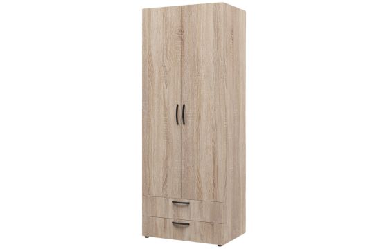 Dollap rrobash, melaminë, me 2 dyer, me 2 sirtarë, sonoma, 80x52xH205 cm