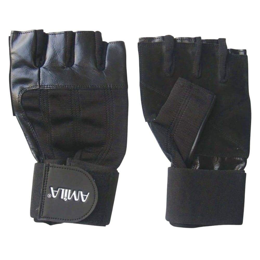 Doreza palestre, Amila, lëkurë, masa L, ngjyra e zezë, me fasho te kyçet