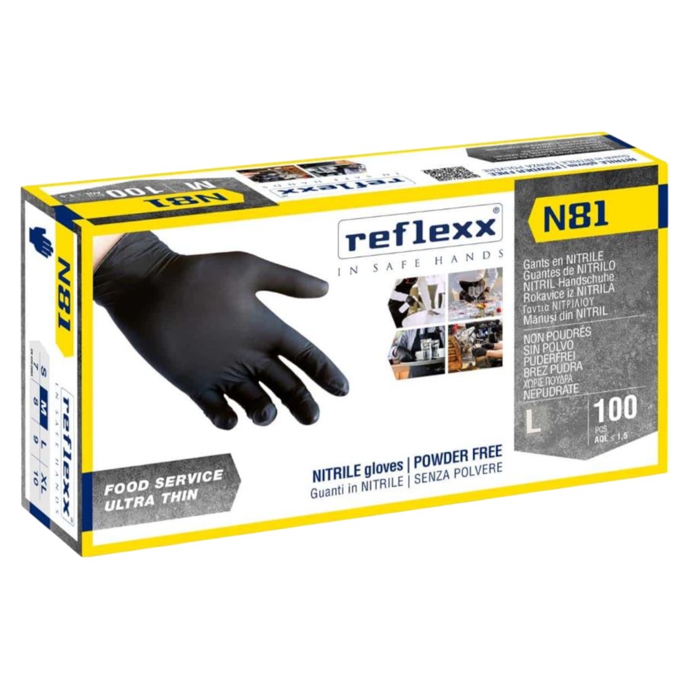 Doreza pune njëpërdorimshe, Reflexx, nitril, pa pudër, masa L, 100 copë, ngjyra e zezë