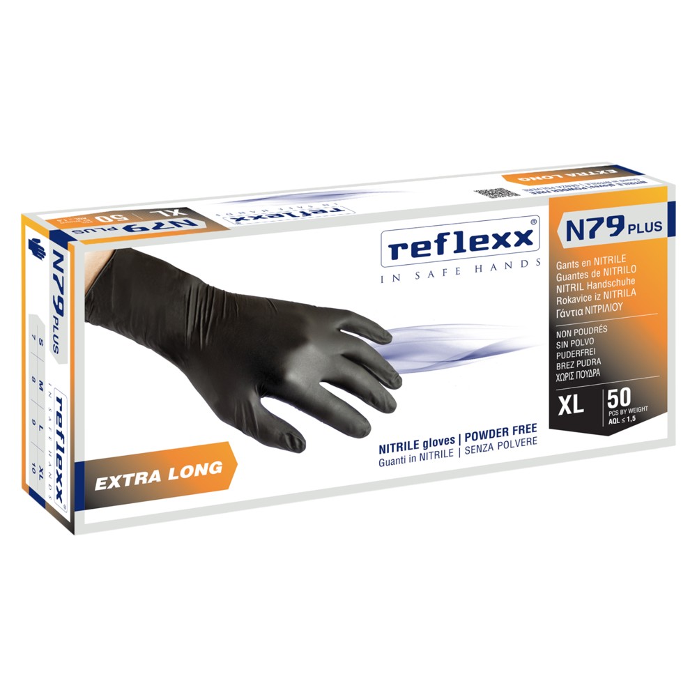 Doreza pune njëpërdorimshe, Reflexx, nitril, pa pudër, masa L, 50 copë, ngjyra e zezë