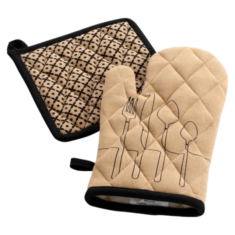 Doreza dhe mbajtësja e kuzhine është një aksesor i rëndësishëm për çdo ambient kuzhine. Këto janë aksesorë që shërbejnë për të kapur cdo enë kuzhine të nxehtë gatë gatimit. Produkti është i bërë nga pambuk i ricikluar. Me një kombinim të ngjyrave bezhë dhe e zeza, ata shfaqin një pamje elegante dhe të përshtatshme për çdo kuzhinë. Përmasat e tyre të përshtatshme, 18x28 cm doreza dhe 20x20 cm mbajtësja. Doreza dhe peceta janë jo vetëm funksionale, por edhe estetike, duke shtuar një prekje të bukur dhe të dobishme për ambientin tuaj të gatimit.