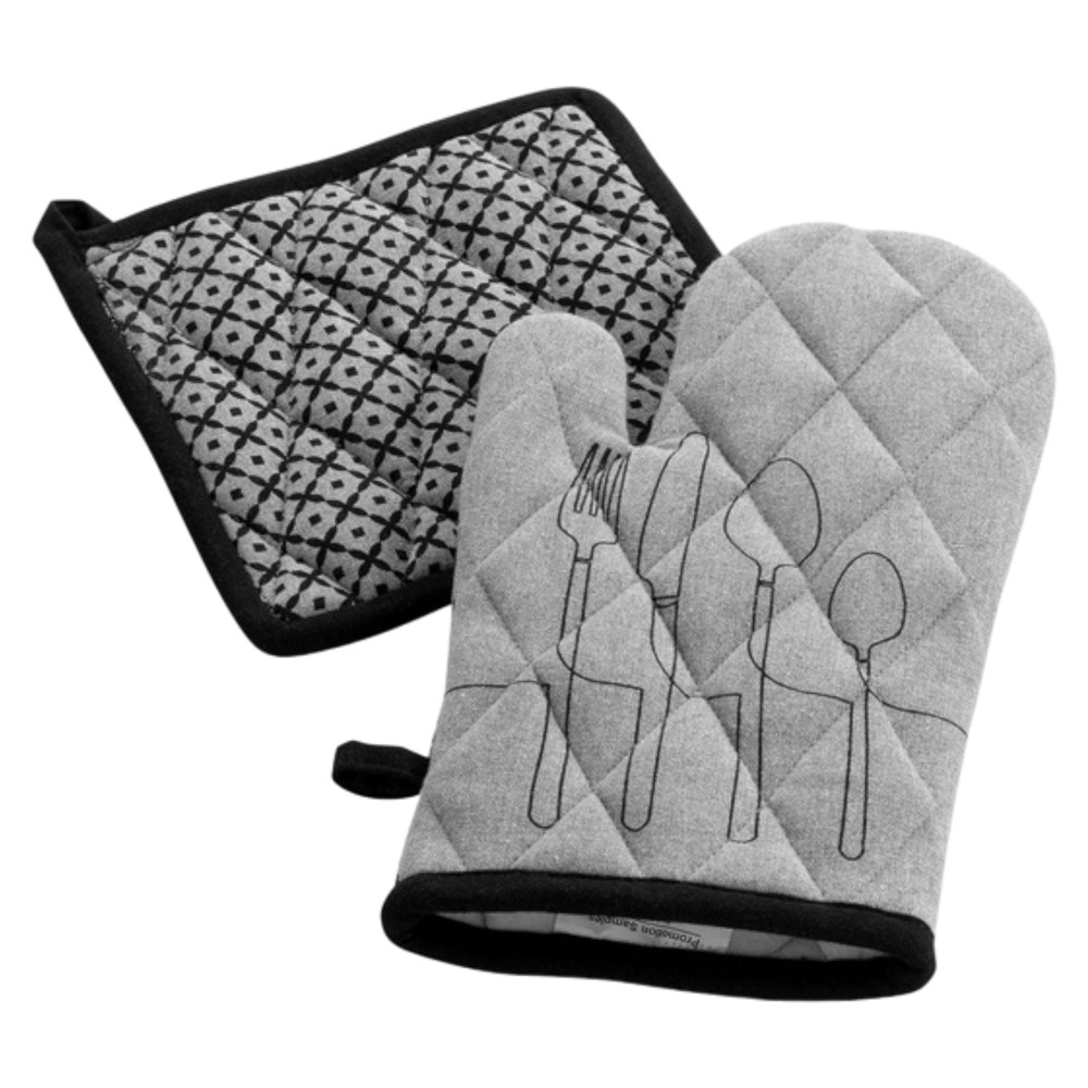 Po vlerësoni:Kitchen glove and pot holder, light gray, 18x28 cm/20x20 cm, cotton